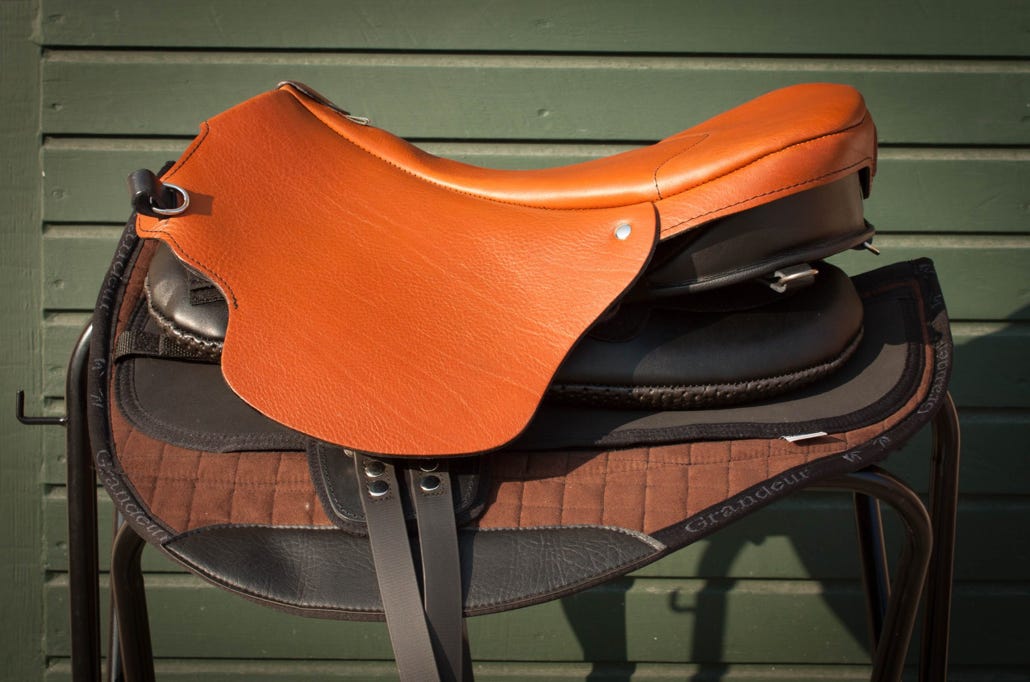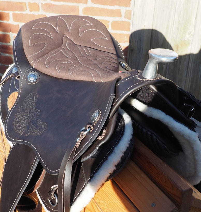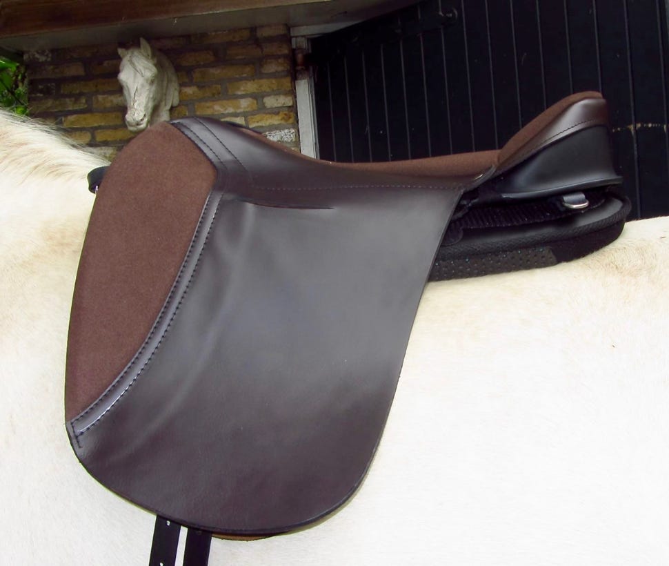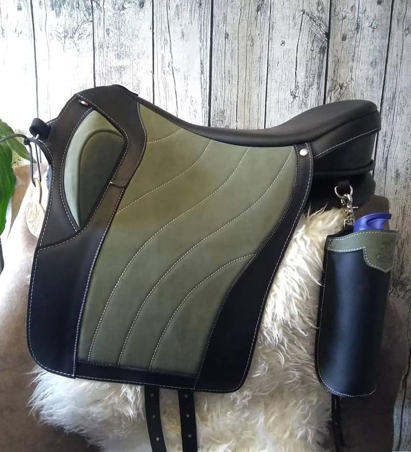 The Ghost Quilty, Quevis, Ferrara, Puro, Camargue and Florac are all models with a short flap, good for pleasure, trail and for those riders who love to have little between them and their horse. The Ghost USA is based upon these models, but has a skirt and a horn for the genuine western look. The Quilty has vertical thigh blocks, for the rider who likes to have the legs straight. The Quevis has the thigh blocks slightly angled and in a more forward position for riders who prefer to ride with shorter stirrups. The Ferrara has the blocks incorporated in the flap. The Florac has no blocks. The Ghost USA can be delivered with thigh blocks in both positions.