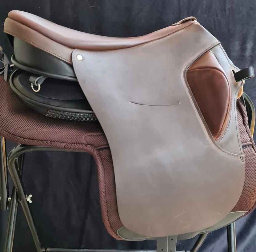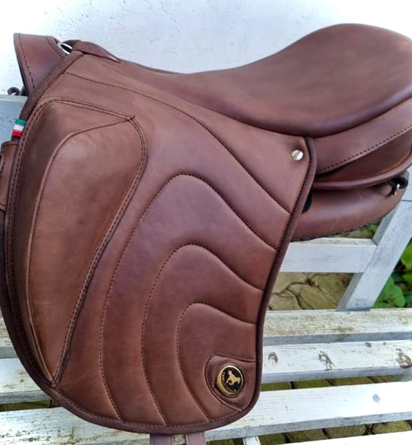 The Ghost Roma, Veneto, Barocco and Torino are dressage style saddles. Also available with a hidden pommel. The Roma has vertical thigh blocks, for the rider who likes to have the legs straight. The Veneto has the thigh blocks slightly angled and in a more forward position for riders who prefer to ride with shorter stirrups. The Barocco can be made with both types of thigh blocks . The Torino has the blocks incorporated in the flap and can be removed.