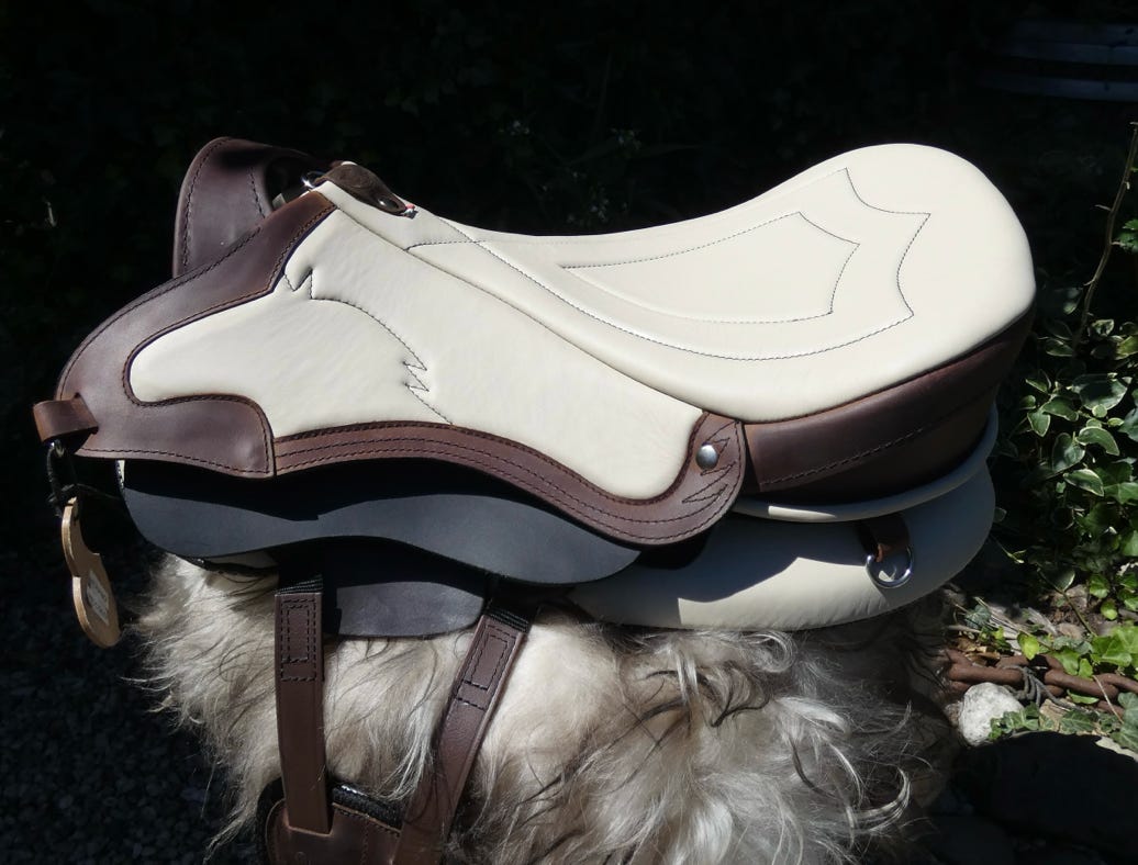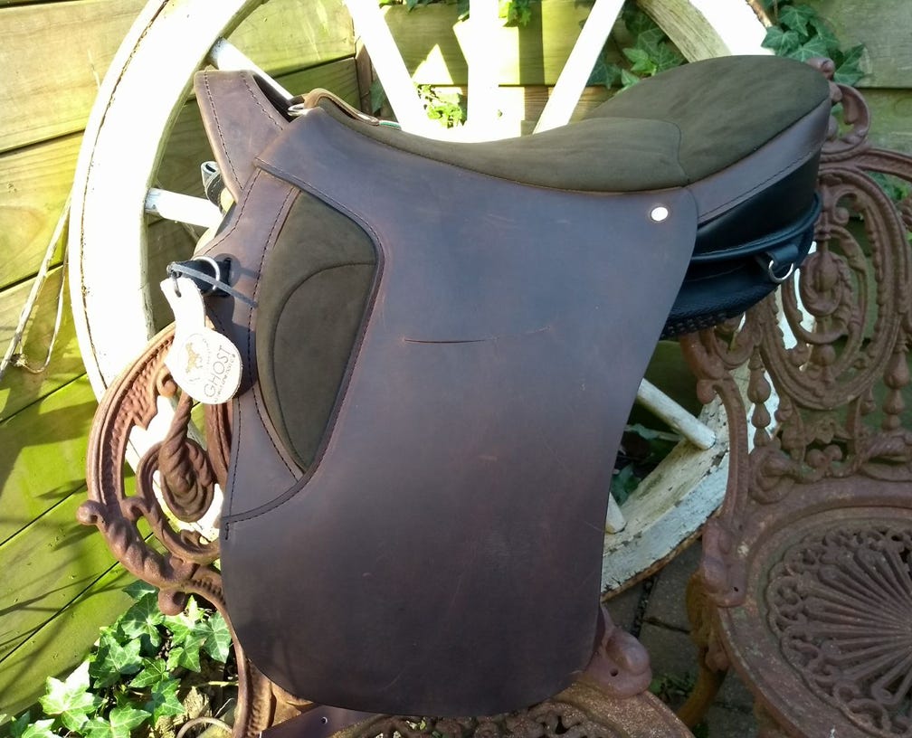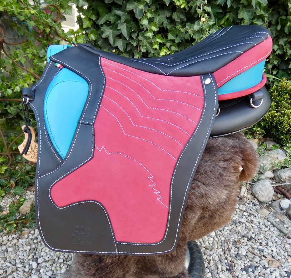 Ghost Maremma is a normal Ghost saddles, but made with a seat from real untreated sheep skin. You can order them in several styles. The Cagliari has longer flaps (such as the Roma) and the Maremma has the same shape as the Quilty and Quevis. You can order them with blocks, wild cut or with the same contours as one of the other models.